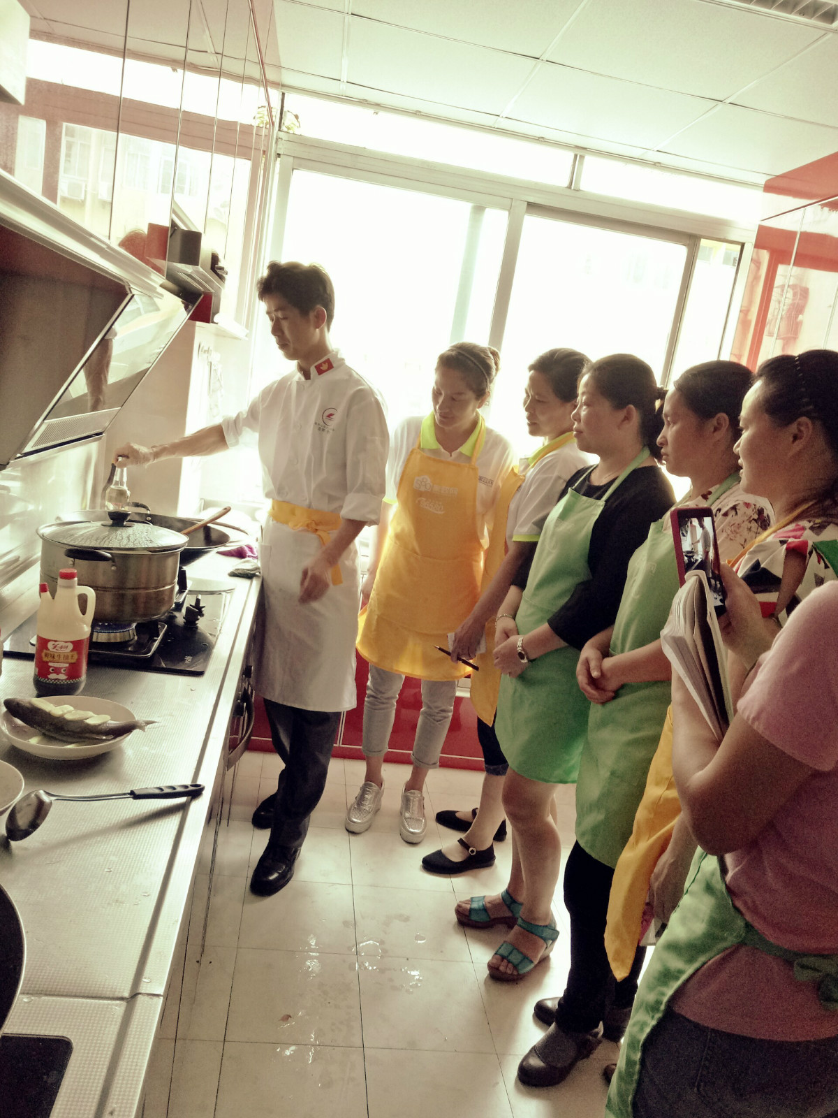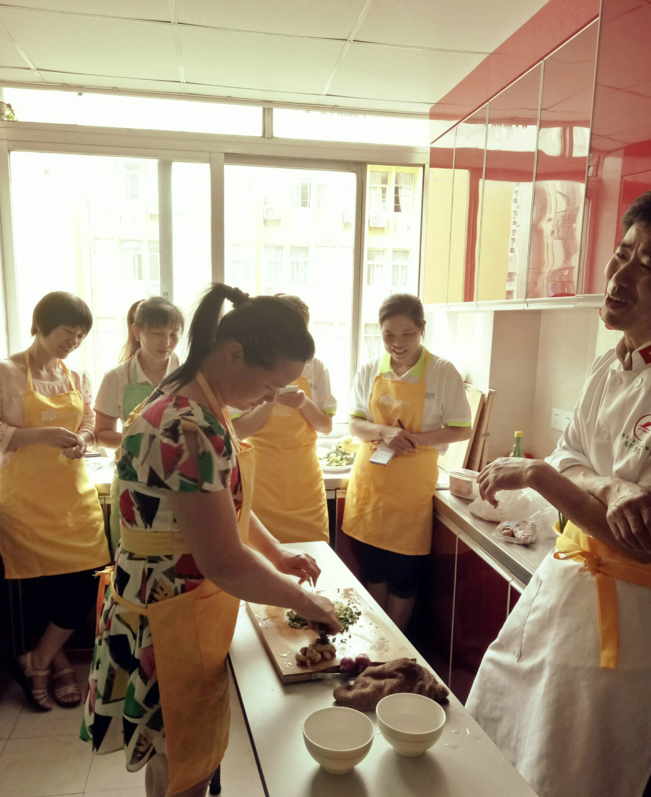 上锅了,厨房火热朝天,学员们兴高采烈
