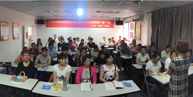 2016年5月14日、15日,为期两天的订单式岗前培训在深圳市深家职业技能培训中心隆重举行,五十多个座位的大教室座无虚席,足见家政服务员的学习积极性和热情。