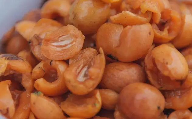 传统的古法特别繁复,需要用20斤枇杷才能出一斤汁。刚从树上摘下的新鲜枇杷,挑选洗净后去皮去核,木榨取汁,加入老冰糖,放入土灶中,木柴生火熬制10个小时成膏。