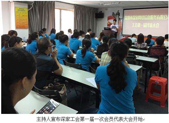 6月30日,深圳市深家网络信息服务有限公司工会第一届一次大会在培训中心隆重举行,50名工会会员代表参加了本次大会,自此,深圳市深家网络信息服务有限公司工会宣告成立。