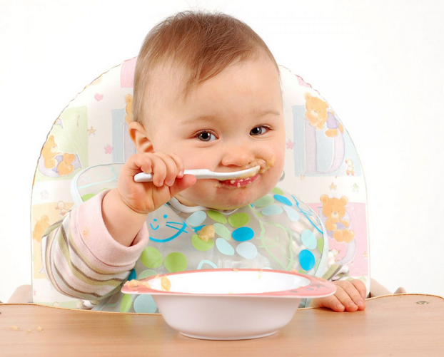 这个阶段,宝宝刚开始学习自己吃饭,真正吃到嘴里的东西可能少之又少,没关系,先给他练习的机会,多准备出一份饭,等他练习完了,再喂给他吃。