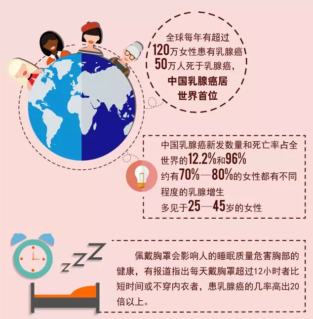 调查指出,世界上80%的女性戴着不合适的胸罩。那些因长时间戴胸罩而患上乳腺病的女性,十有八九是因为选择的胸罩不合适。