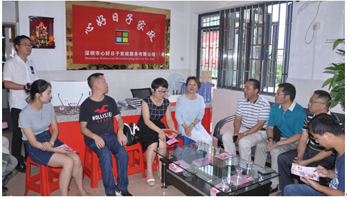 2016 年7月18日-20日,由怀化人社局、商粮局、家协等相关领导率怀化市家政企业家代表一行14人组成的赴深考察团,在深圳市家庭服务业发展协会会长孙景 涛、秘书长张国燕等陪同下,先后参观了580家政网京基百纳服务站及明月服务站、魅力辣妈产后恢复中心及月子会所、创乐福居家养老服务中心园东社区老年日 照中心、心好日子家政服务有限公司等代表企业。