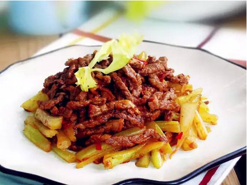 牛里脊肉100克、葱5克、姜5克、蒜5克、芹菜25克、红辣椒15克、盐10克、味精5克、鸡粉5克、料酒15克、淀粉10克、花椒油5克、老抽3克、白糖5g、豆瓣酱10g、蛋清10g