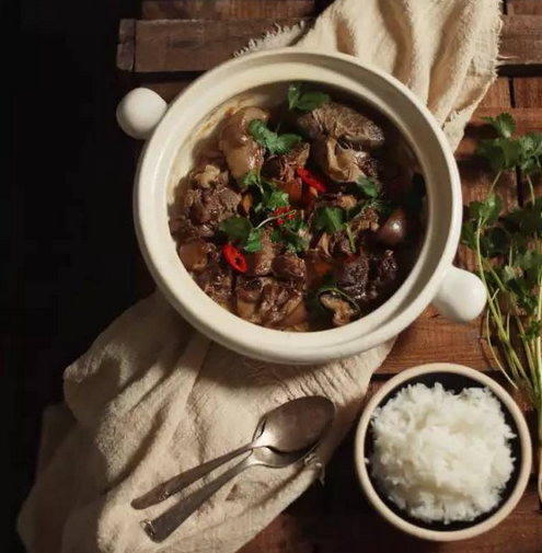 1.牛腩洗净切大块,下2/3汤匙油拌匀,加入八角及适量清水(约5