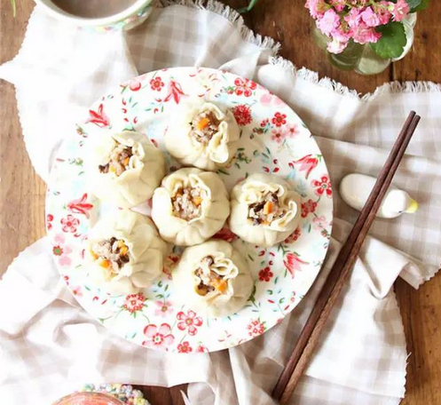 4.蒸锅加水,把包好的烧卖放进去大火蒸十五分钟,关火后再虚蒸三分钟即可 。